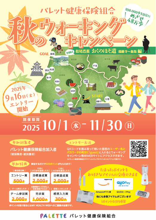 10月1日より、 健康保険加入者を対象とした秋のウォーキングキャンペーンを開催いたします。